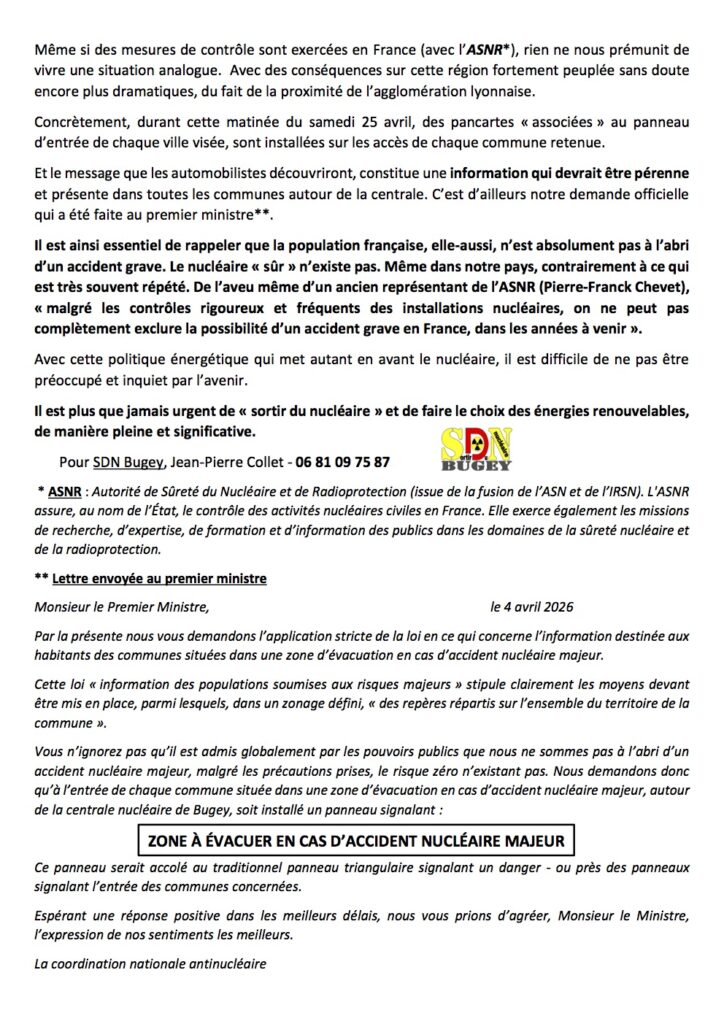 l’Association Sortir Du Nucléaire Bugey pose la question dans son communiqué de presse :