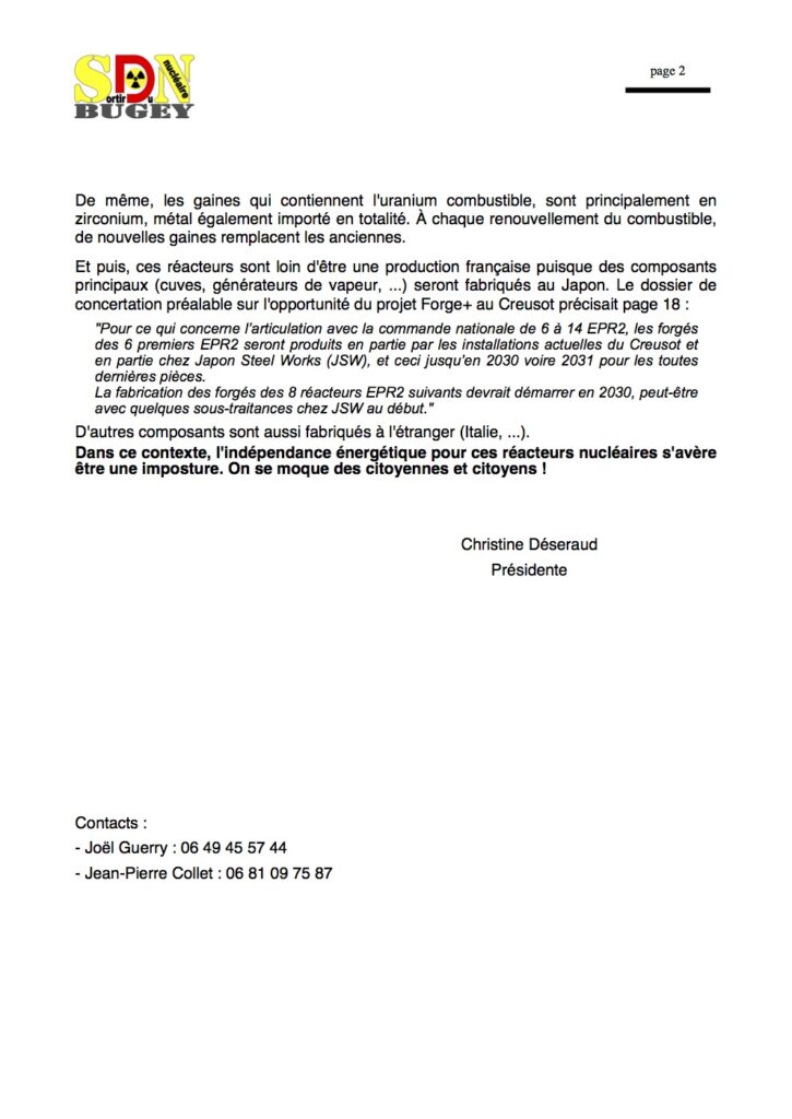 Nous contestons sur le fond, le bien-fondé de ce projet d’EPR2 à Bugey.