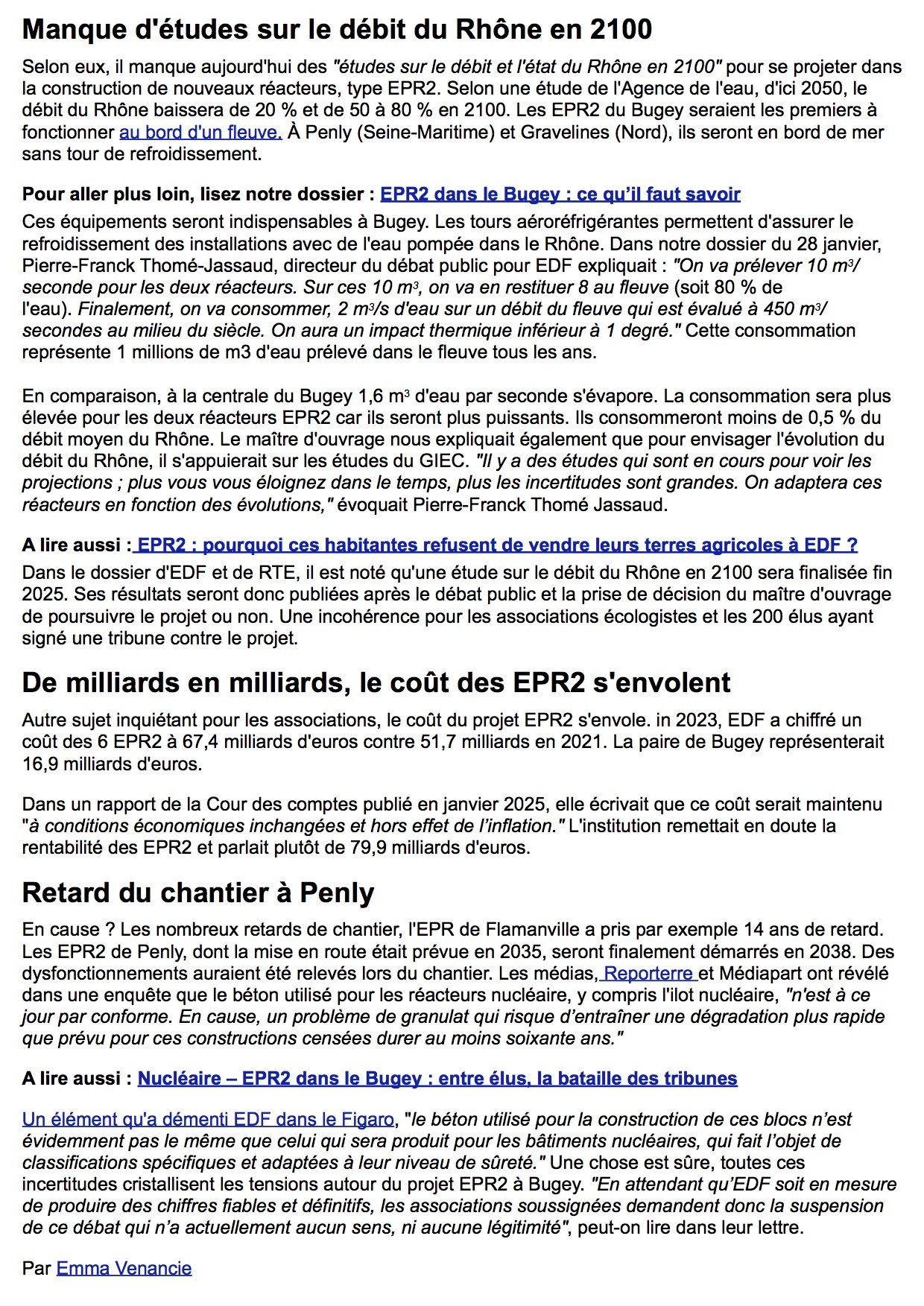 Nous contestons le bien-fondé de ce projet d’EPR2 à Bugey.