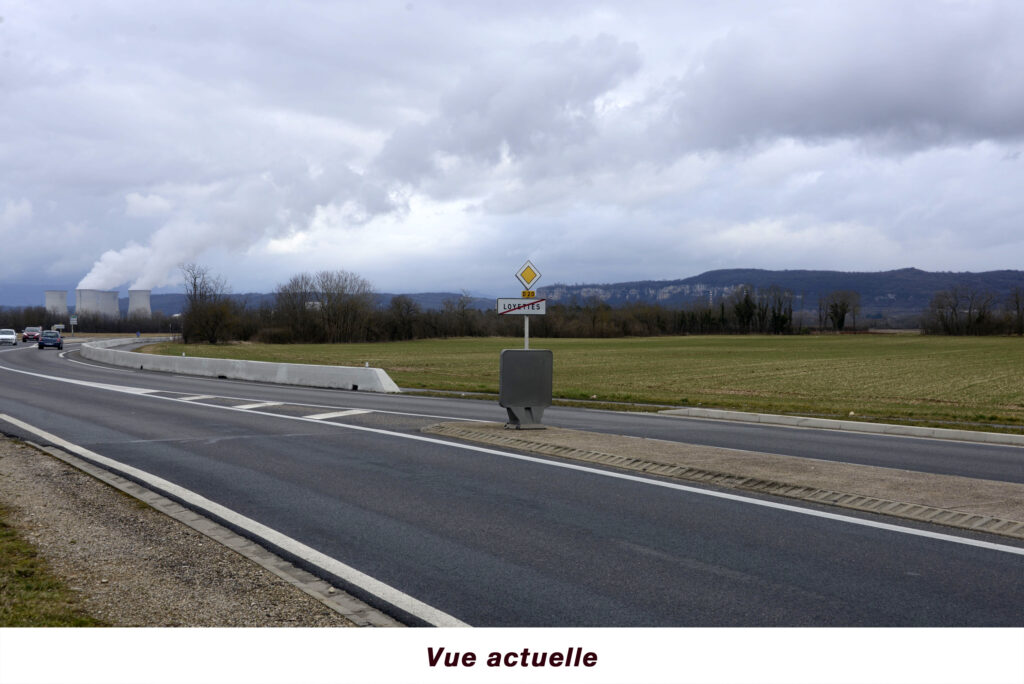 Vue depuis le rond-point à la sortie de Loyettes (01) direction Saint-Vulbas (01) :
